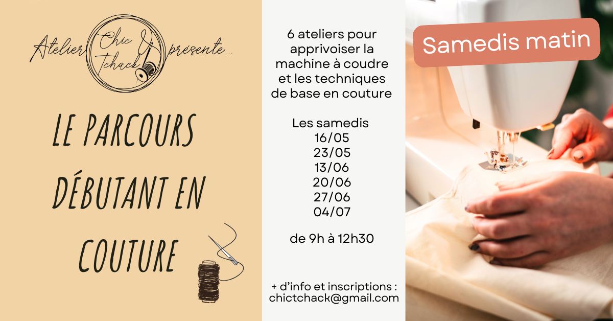 16may9h0012h30Parcours Couture débutant Adulte en 6 séances – Samedis matinsamedis de 9h à 12h30