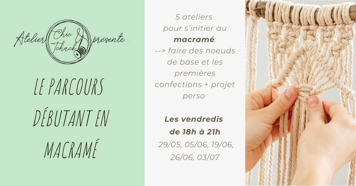 Ce parcours débutant de 5 ateliers de 3h a pour objectif de vous initier à l’art du Macramé.